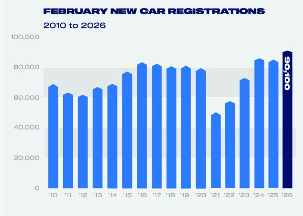 - New car market rises 7.2% in February with 90,100 vehicles registered.